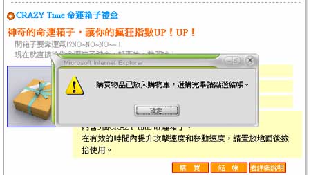 ●彈出一視窗,表示該項物品已放入購物車。