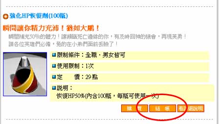 各項商品選購完畢後,按下「結帳」。