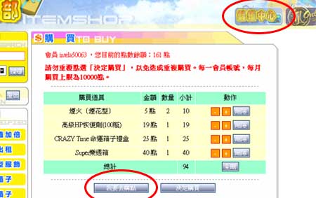 儲值期間請勿關閉販賣部網頁,否則購物車商品將被清空。