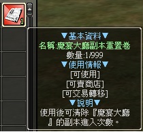 「魔宴大廳」讓您意猶未盡嗎?來張副本重置卷,就可以再次進行挑戰了喔!